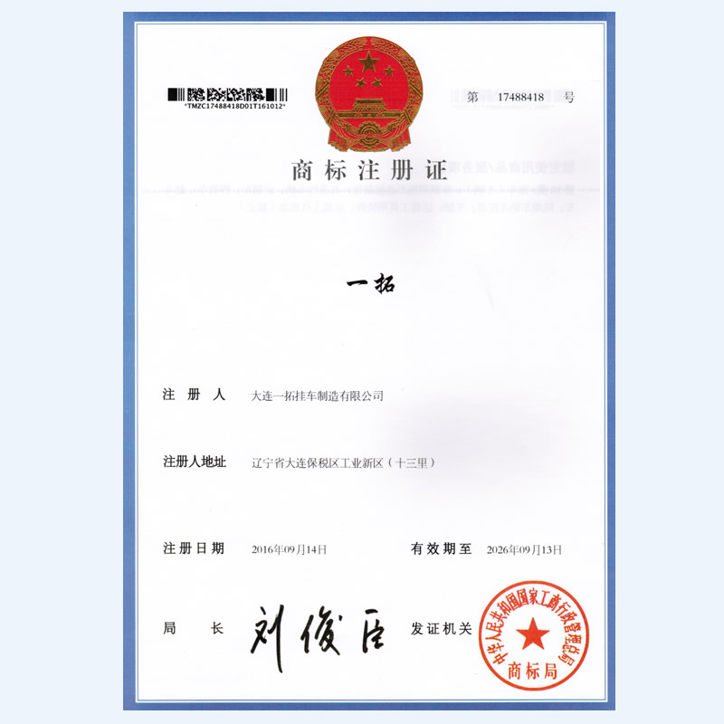 大連一拓掛車制造有限公司,地處遼寧省大連保稅區(qū)十三里工業(yè)新區(qū)興業(yè)街1號,公司占地45000m㎡,總建筑面積24000㎡,現(xiàn)有生產(chǎn)、檢測、研發(fā)設(shè)備100余臺套,擁有自動化程度很高的機(jī)器人焊接生產(chǎn)線。大連一拓掛車制造有限公司成立于2013年,是一家具備國家工信部專用車生產(chǎn)資質(zhì)企業(yè),致力于乘用車掛車的設(shè)計和生產(chǎn),主要產(chǎn)品有:平板板式輕型中置軸掛車、欄板式輕型中置軸掛車、廂式輕型中置軸掛車、特種結(jié)構(gòu)式輕型中置軸掛車,并承接各種用途輕型中置軸掛車設(shè)計等業(yè)務(wù)。公司秉承“銳意進(jìn)取,開拓創(chuàng)新,精益求精,誠信共贏”的運(yùn)營理念,竭誠為您服務(wù)。